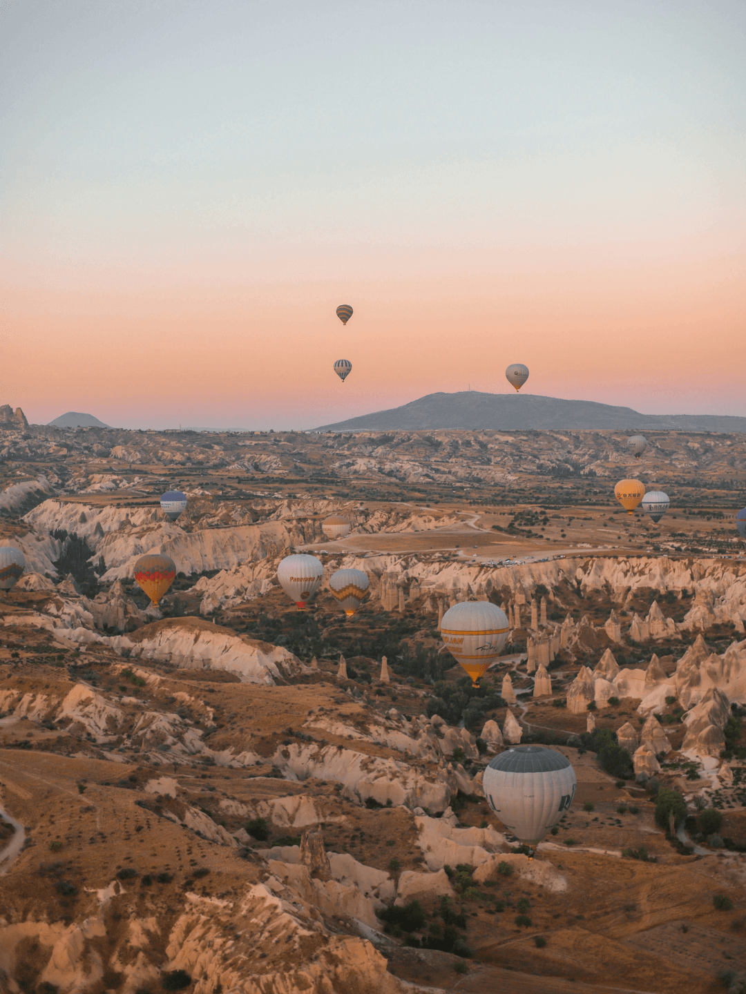 Best vantage: Usually we’d recommend Love Valley, but it tends to get overcrowded with honeymooners and influencers, so opt for Sunset Hill in Göreme, overlooking the Rose and Red Valleys.